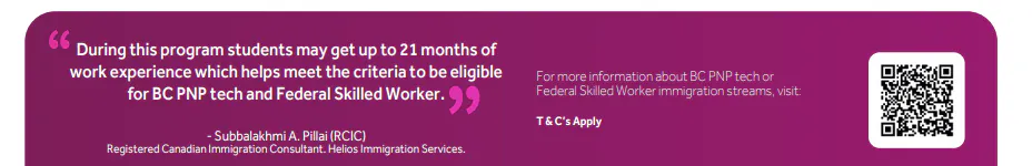 For individuals wanting to start their careers as a developer, this program is ideal. Not only will you gain the skills needed to tackle some of the most complex challenges in the industry, but through practical work experience you will discover the roles that are best suited to your abilities. The program makes you eligible to apply for the BC PNP tech program.